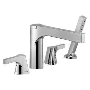 DELTA®, T4774, Roman Tub Trim, Zura™ Collection, 2 gpm Flow Rate, 11 to 16 in Center Distance, Rigid Slip-On Diverter Spout, 9-13/16 in Spout Reach, 6-15/16 in Spout Height, 59 in Hose, Lever Handle, 2 Handles, 4 Faucet Holes, Spray Pattern: Full Body/Massage/Pause, Function: Traditional, 3 Spray Functions, Hand Shower: Yes, Deck Mounting, Ceramic Disc, 12 in W x 8-1/2 in H Dimensions, Brass, Polished Chrome, Domestic