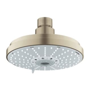 GROHE Shower Head, Rainshower® Cosmopolitan 160 Collection, 2.5 gpm Flow Rate, 1/2 in Connection, Round Shape, 4 Sprays, Spray Pattern: Rain/Jet/Pure/Champagne, Ceiling Mounting, 80 psi Pressure, 6-5/16 in Dia Head, 4 in Overall Height, ABS, Brushed Nickel, Import