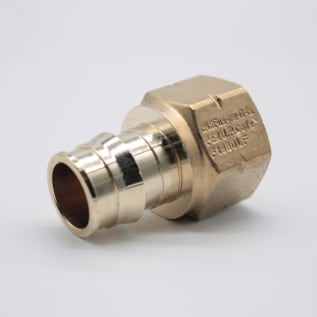 The ProPEX® Lead-free Brass Female Threaded Adapter connects Uponor PEX tubing to female NPT threads.1 Use these fittings in hot and cold domestic potable water systems or in any radiant heating system. One end of the adapter is manufactured with the Uponor ProPEX® Fitting for connections to Wirsbo hePEX™ tubing or Uponor AquaPEX® tubing. The other end of the adapter connects to copper. These adapters are safe for direct burial in soil.